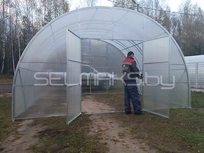 Торцы теплицы закрыты поликарбонатом, толщина которого 8 мм.